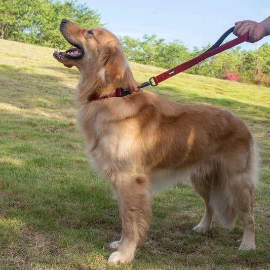 Traffic Nylon 18 Inches Short Leash with Soft Neoprene Padded Handle for Giant Large Medium Boy and Girl Dogs - Professional Training, Daily Use Walking. (18 Inches, Red)
